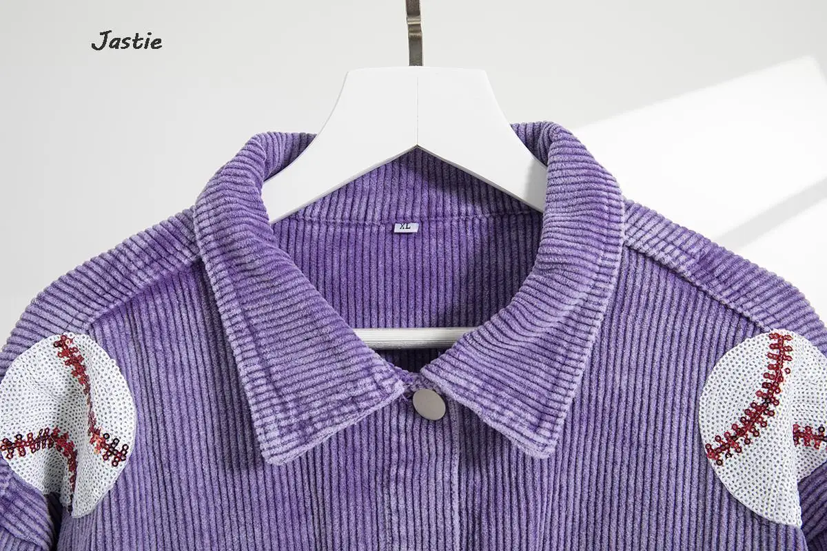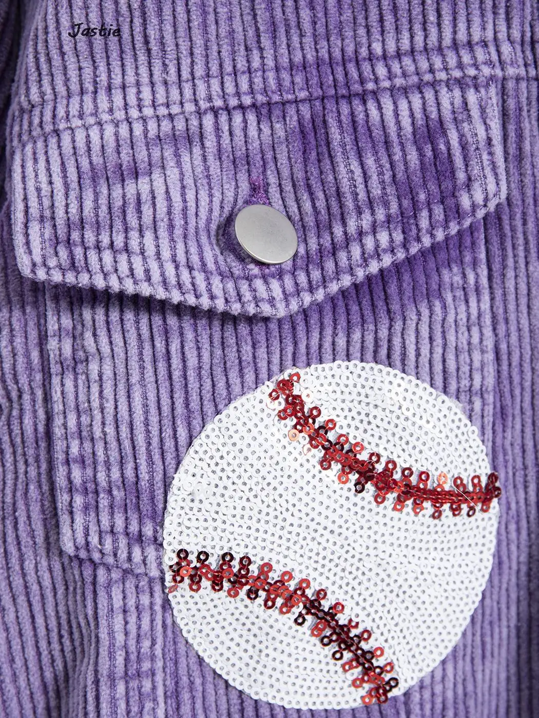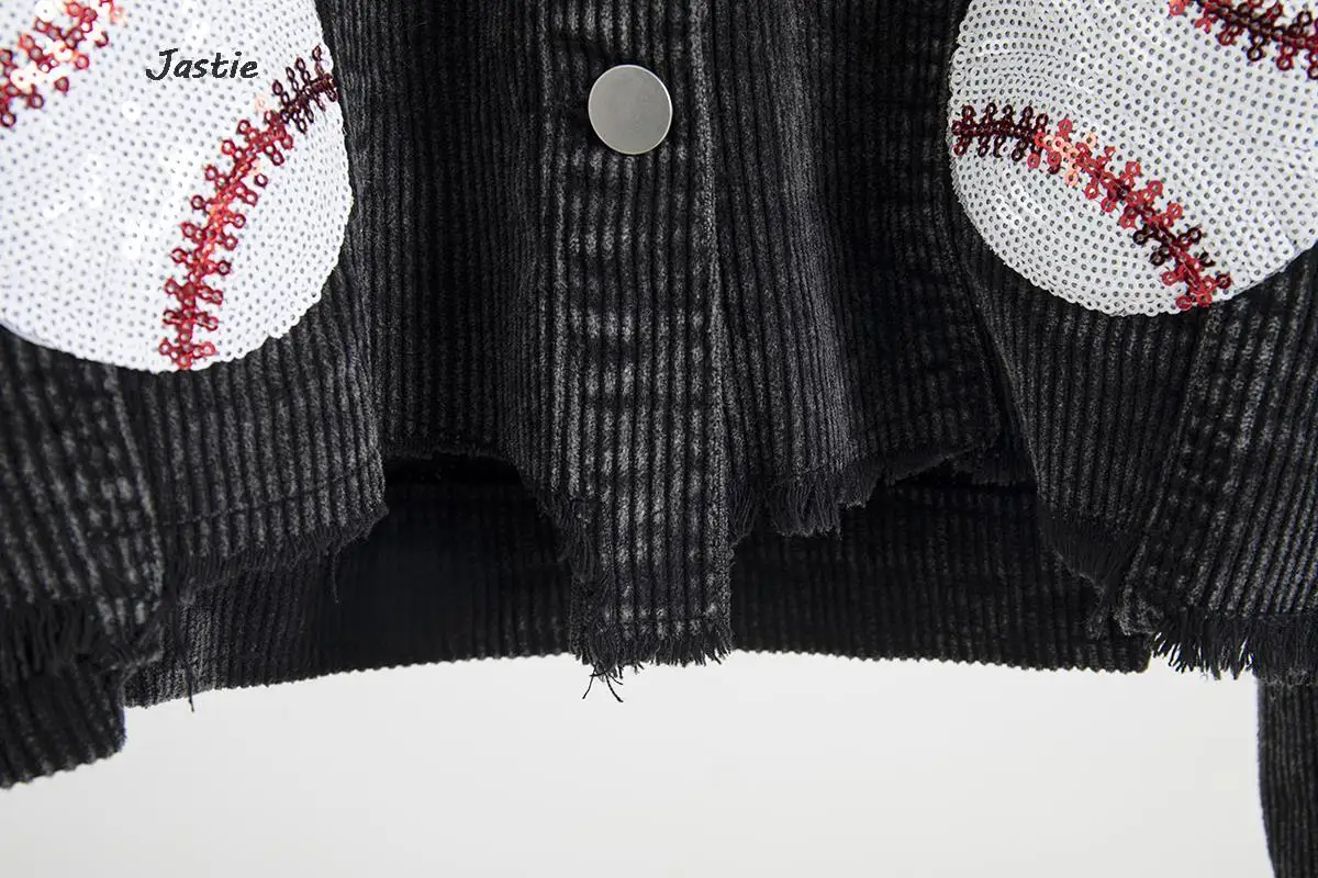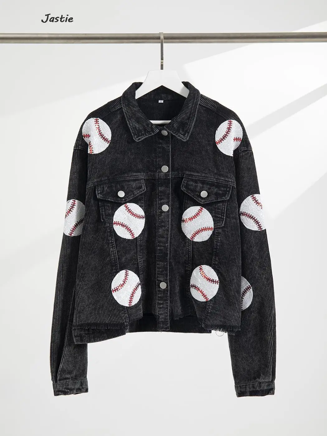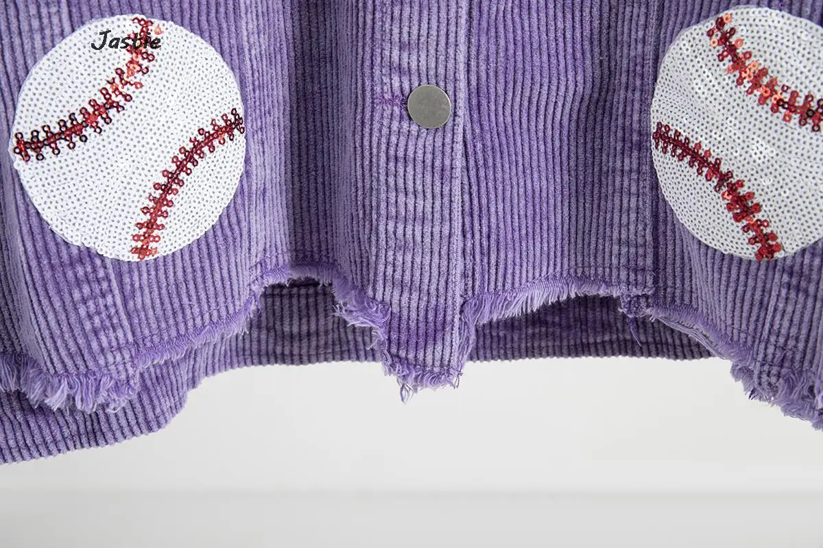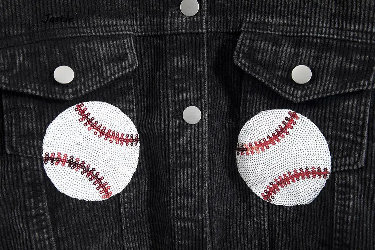 2024 New Distressed Corduroy Jacket Women’s Baseball Sequin Lapel Long Sleeve Autumn And Winter Jacket Tops For Outerwear