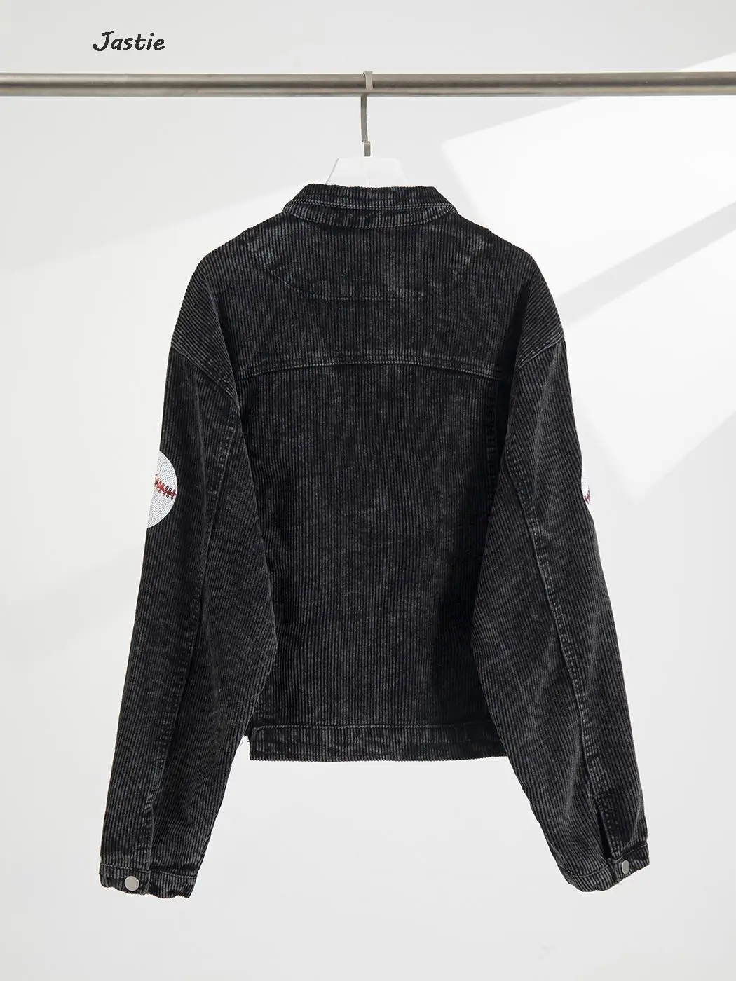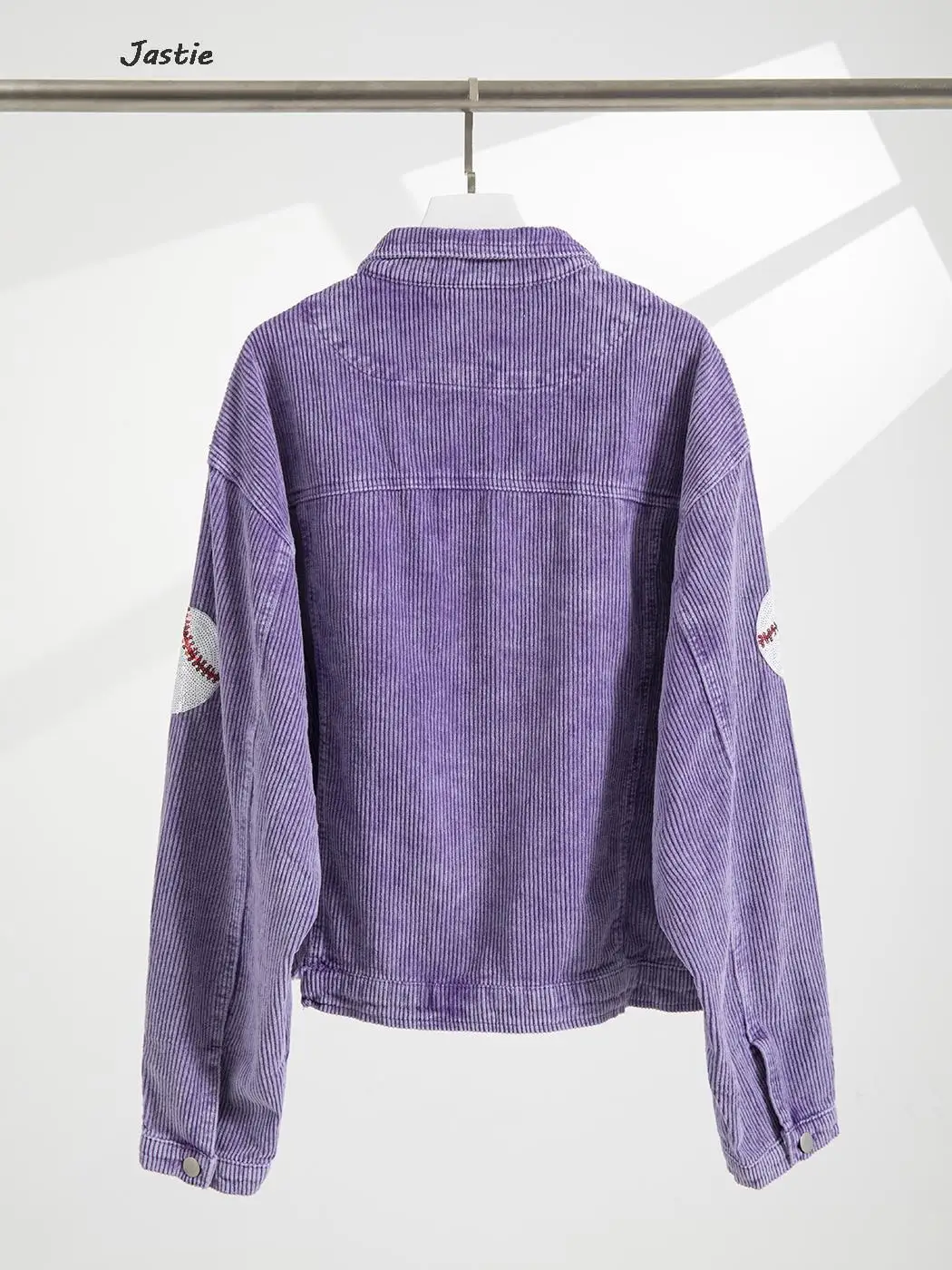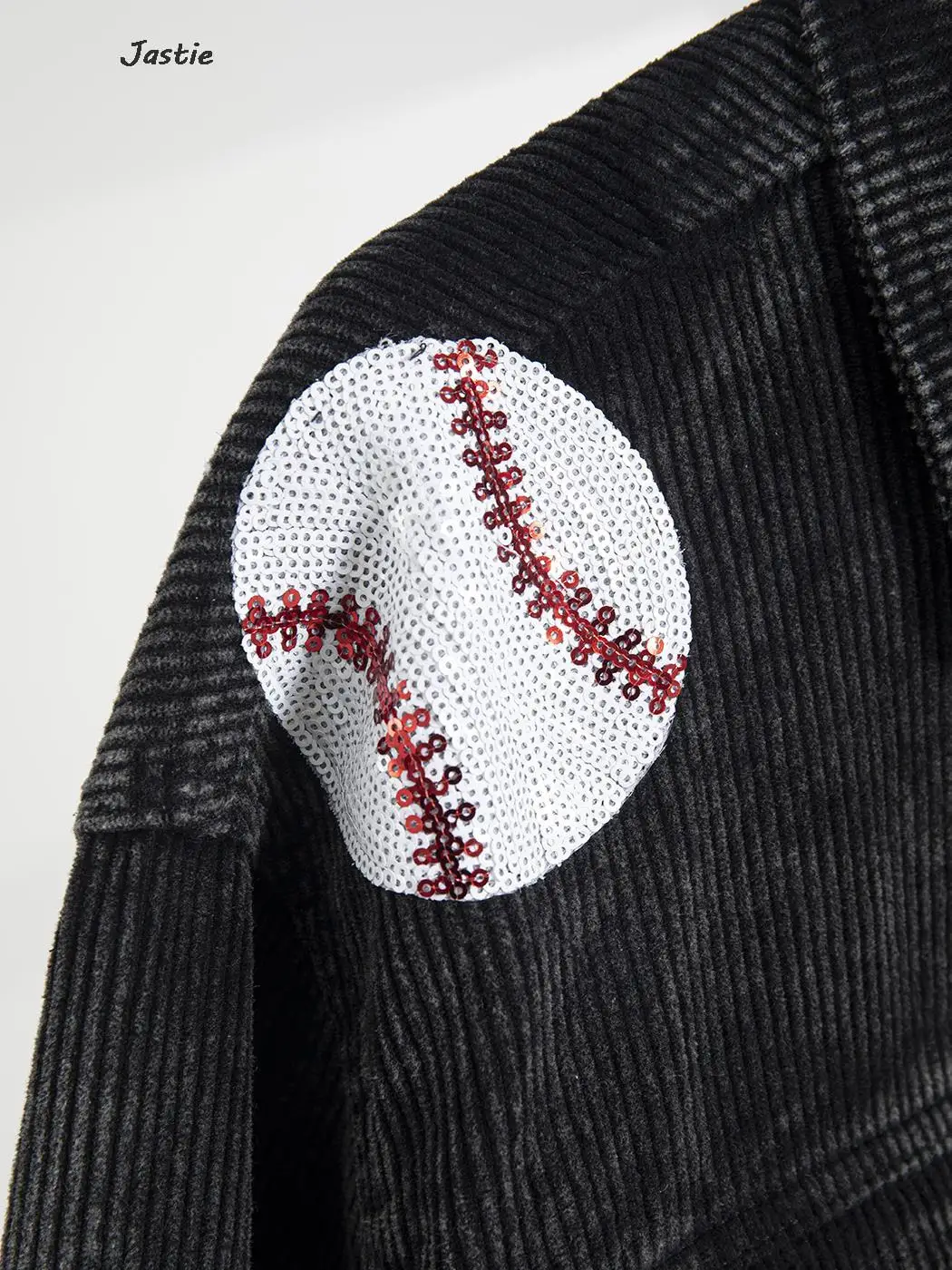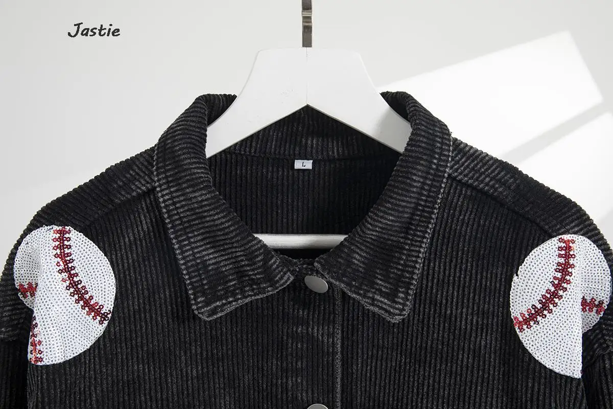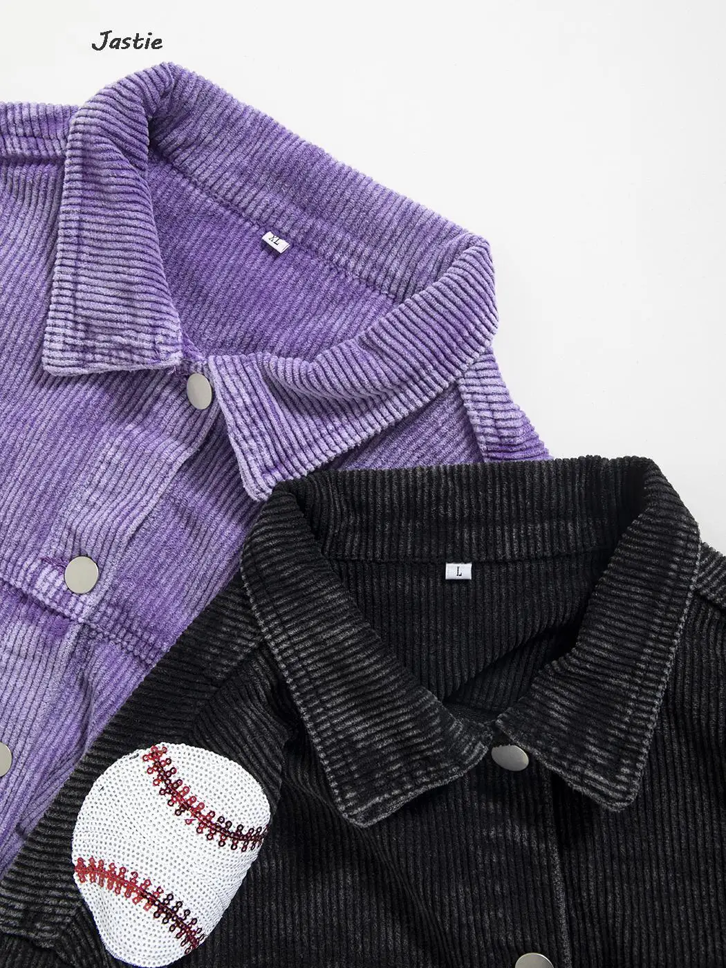 2024 New Distressed Corduroy Jacket Women’s Baseball Sequin Lapel Long Sleeve Autumn And Winter Jacket Tops For Outerwear