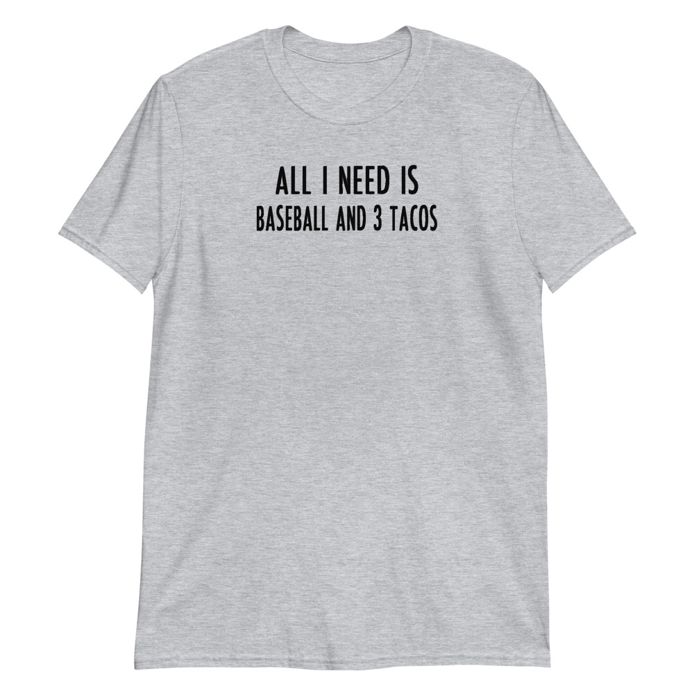“All I Need is Baseball and 3 Tacos” Short-Sleeve Unisex T-Shirt